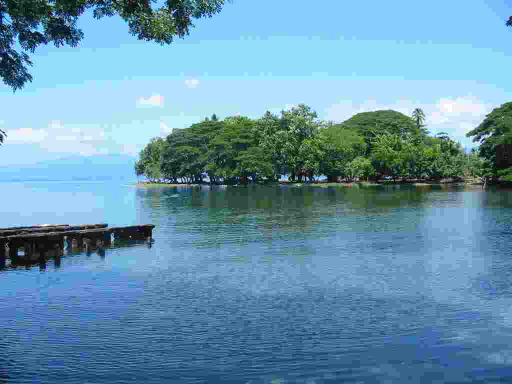 covered slopes of Mount Dimodimo rise to over four thousand feet behind
