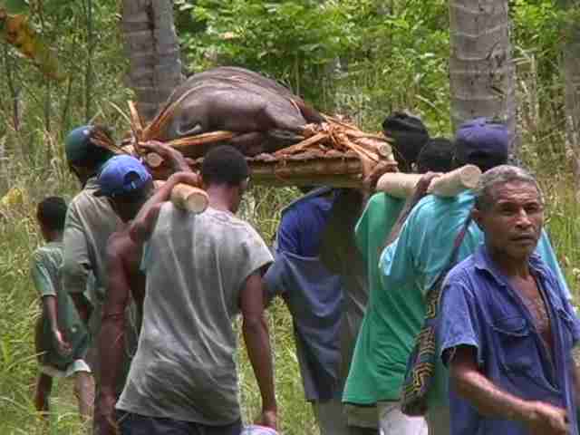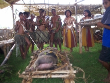 Traditional ceremonies still play a big part in the lives of the people of Milne Bay. Ceremonies to mark marriages, land compensation, traditional festivals and peace ceremonies are performed as part of daily life. Planning for a ceremony usually begins three to six months in advance while in some cases planning commences up to twelve months before the big event. Pigs to be exchanged during the ceremony are raised and fattened and extra food gardens are cleared and planted to ensure a plentiful supply of food to feed the many people who are expected to attend from other tribal areas. In the days just before the event men go fishing and hunting to stock up on fish, wild pig and cassowary. |