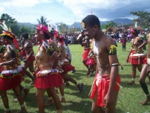 Hagita Secondary School and Cameron National High Schools host bi-annual culture shows. Cameron National High School will be held 25th and 26th July while Hagita Secondary School 29th August and 30th August 2008. As is custom, prior to joining in the celebrations, each group of students build a traditional dressing house. The traditional houses are made to resemble the original dwellings of their ancestors and are decorated in traditional colours. Students dress in customary atire for the shows. |