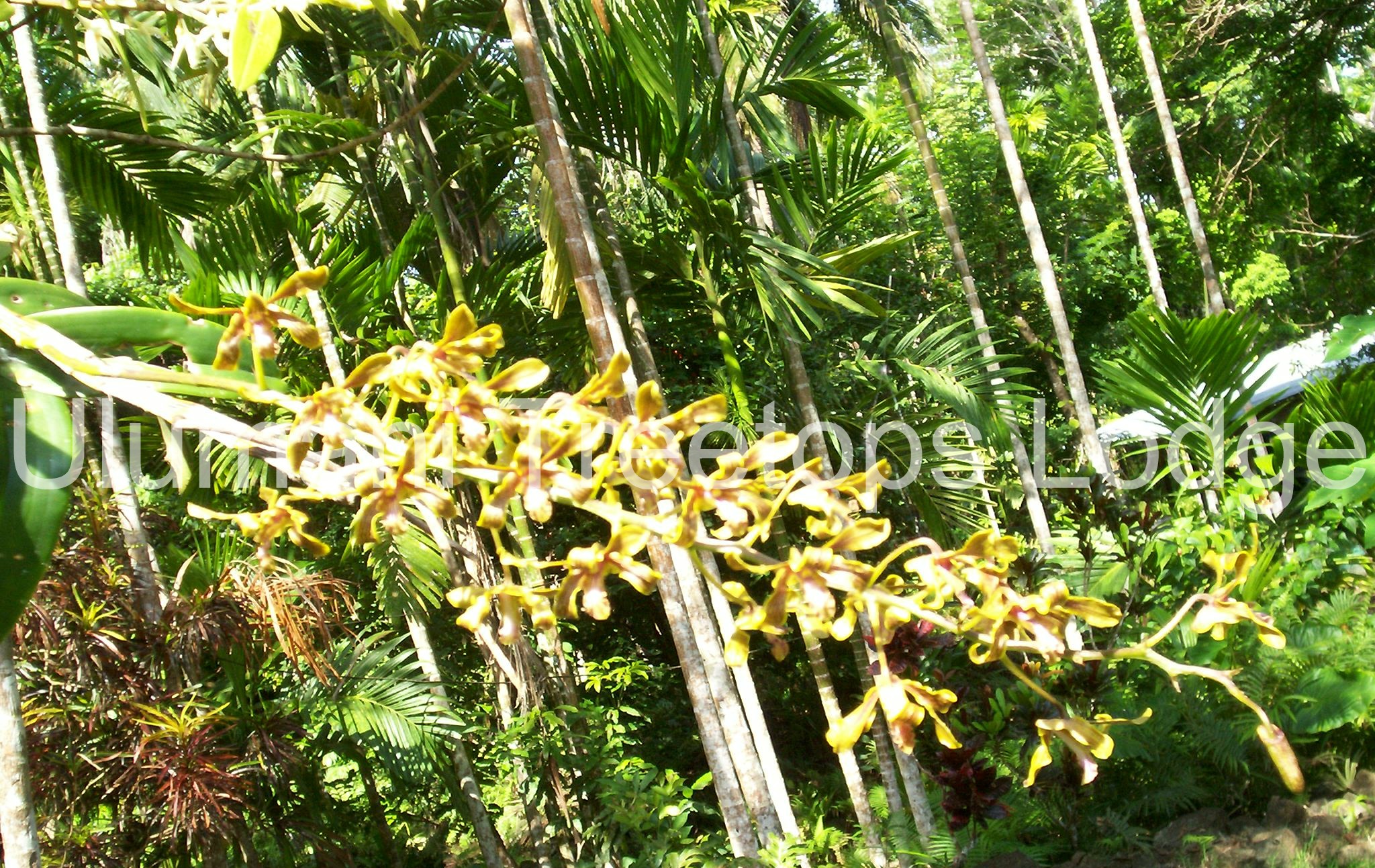 Ulumani - Treetops Rainforest Lodge is a home to some stunning and unique varieties of Orchids. The Land Owners have been very protective of the Orchids Not Allowing Visitors to Remove them giving a Unique arrangement of Orchids not found elsewhere. In the past 32 years, the loggers had salvage the rainforest and they have lost all the unique varietie of Orchids, home for birds and animals in the wild and the marine life was also polluted. The logging ships which came to buy the logs had also marched into the rainforest and helped themselves in the rainforest with Orchids too. Sadly they have lost lots of the varieties of Orchids in the rainforest all the bird life. In doing so the lodge had to be built to protect whatever little was left after logging was stopped. |